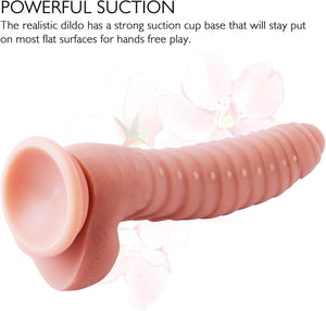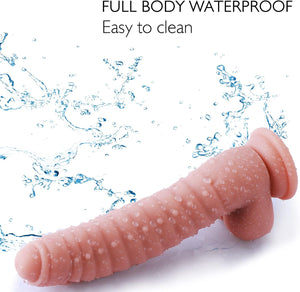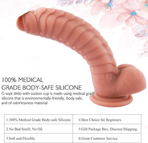 Fabricado con silicona 100% segura para el cuerpo y no tóxica, este dildo ofrece un toque suave y sensual que no dañará tu piel. Disfruta del placer máximo con la textura suave y realista de este material duradero y lujoso.