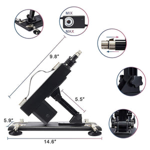 Con una velocidad de embestida de 0-400 veces por minuto y un ángulo ajustable (0-85°), esta máquina ofrece intensidad personalizada. La distancia telescópica de 2.4 pulgadas asegura una penetración más profunda, mientras que el motor potente proporciona una estimulación constante e intensa, satisfaciendo todos tus deseos.