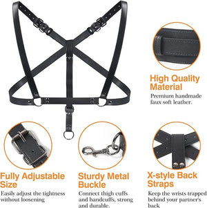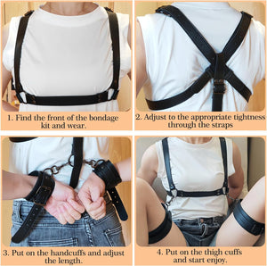 Kit de Bondage BDSM – Eslinga Ajustable para Muslo, Esposas y Arnés para Pechos