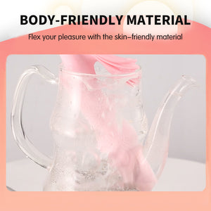 Material flexible y suave: Fabricado con silicona flexible y suave, el vibrador proporciona un tacto lujoso, asegurando una experiencia cómoda y placentera.