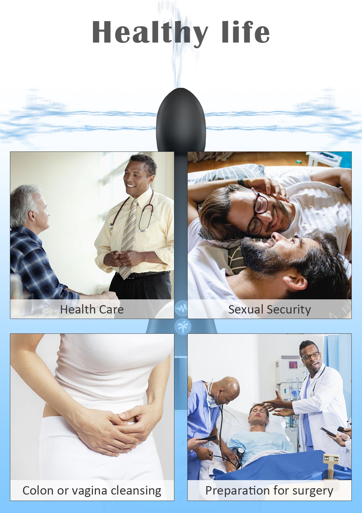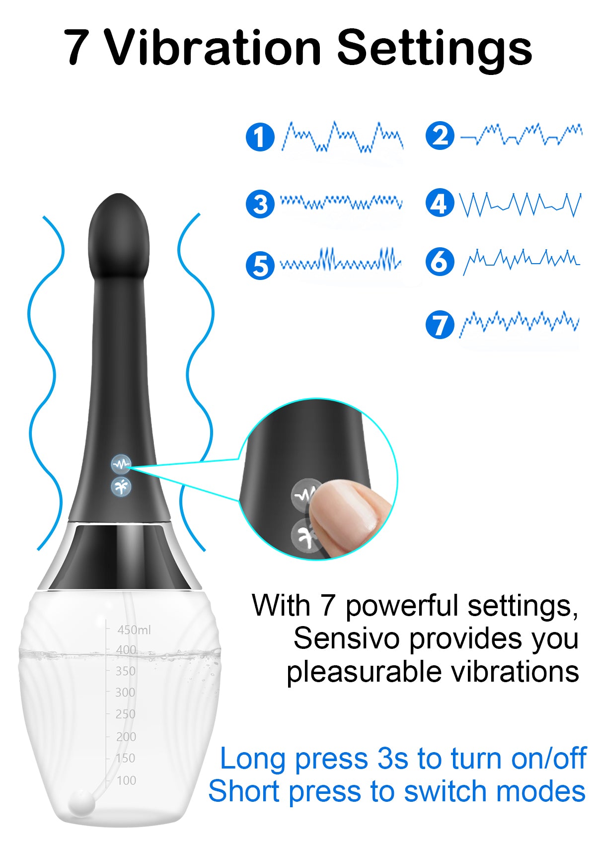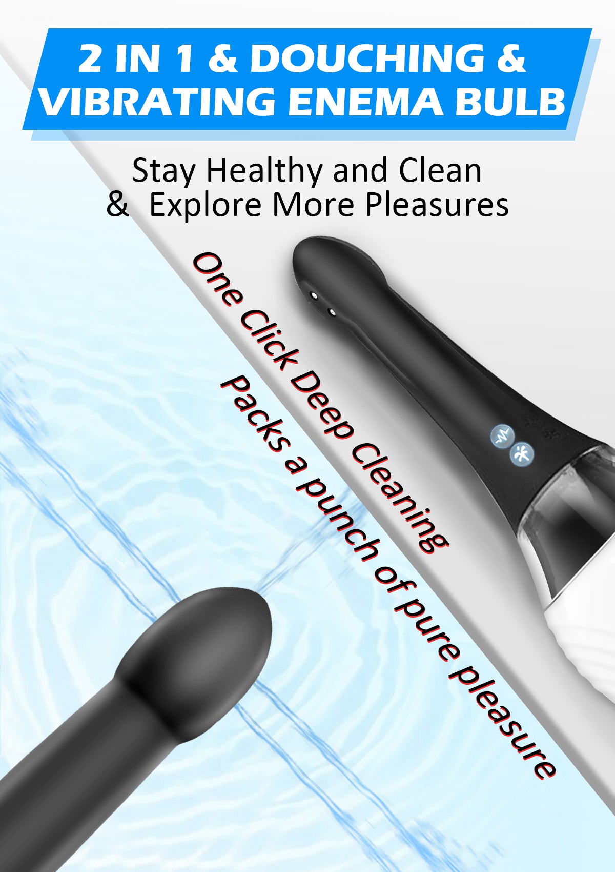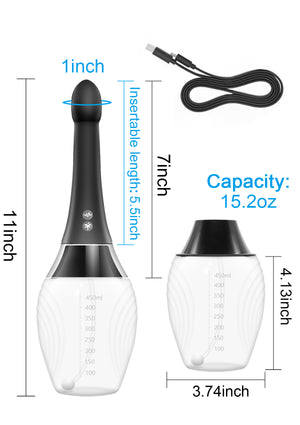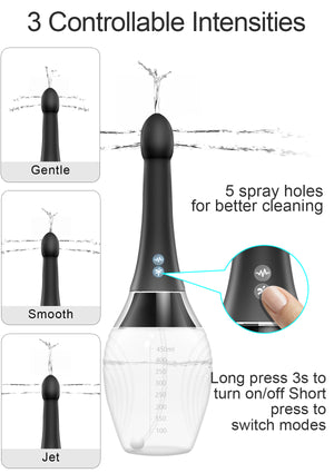 Kit de Enema Eléctrico Automático La pera de enema adopta tecnología de pulverización eléctrica, con orificios de spray y velocidades variables. Este enema tiene métodos de control, permitiéndote manejarlo cómodamente mediante el botón del producto o control remoto inalámbrico.