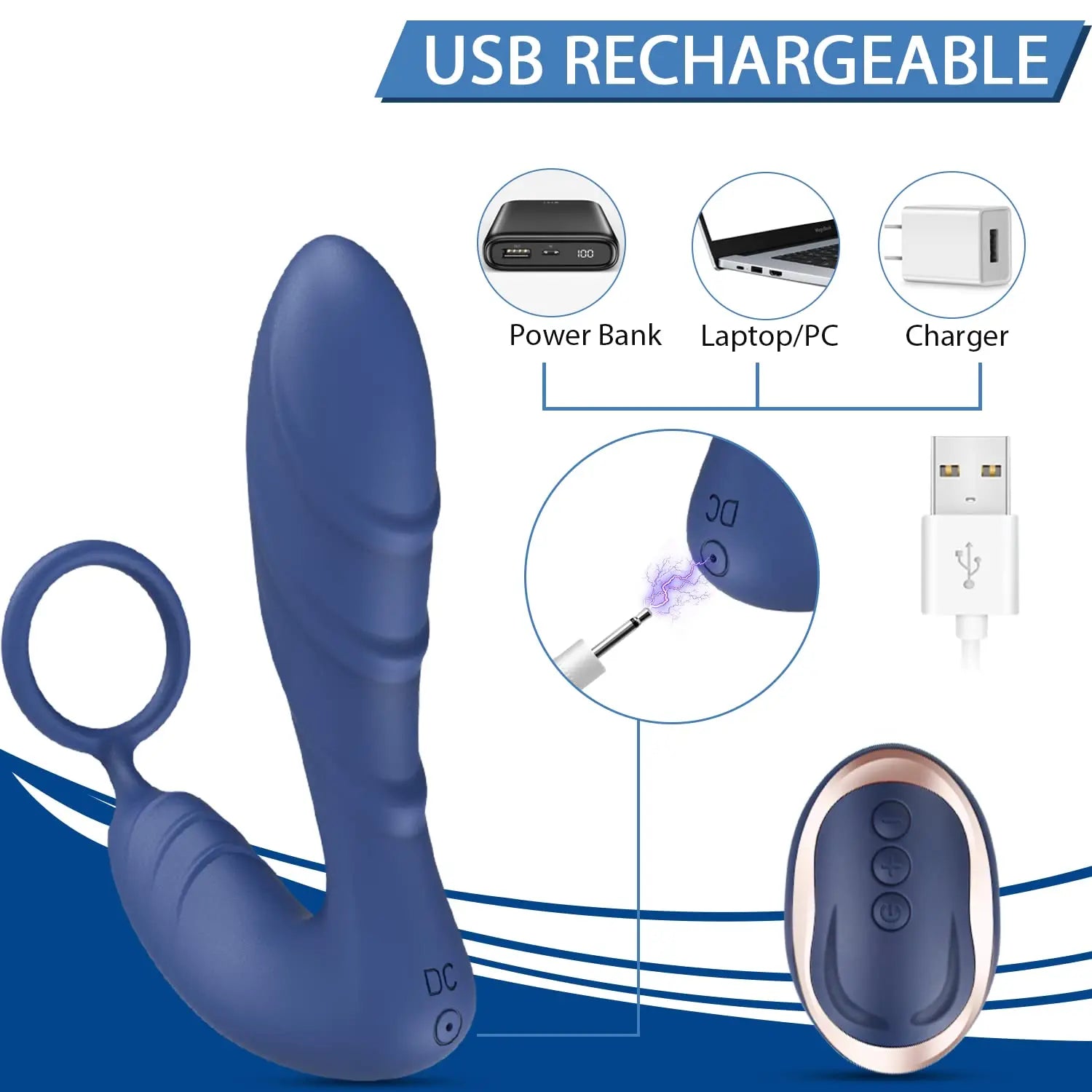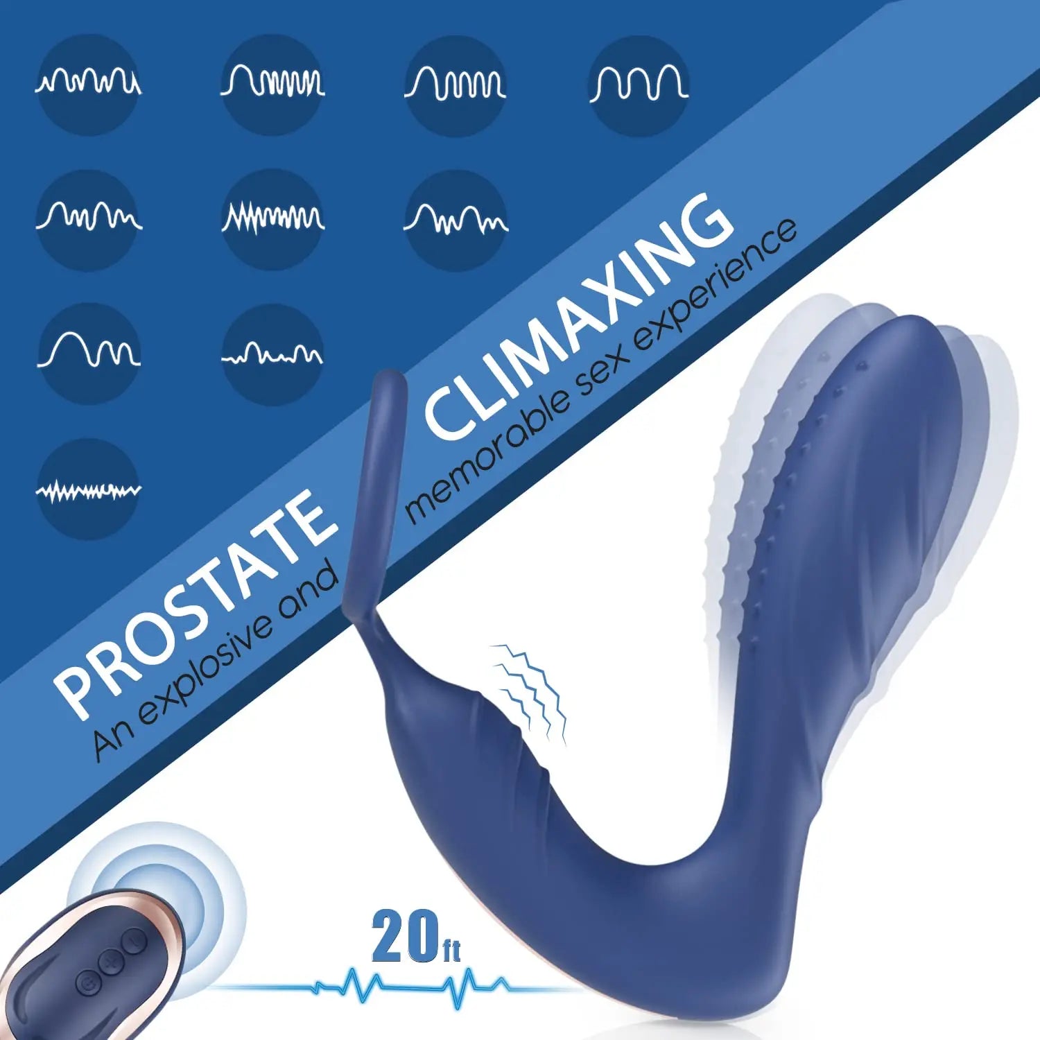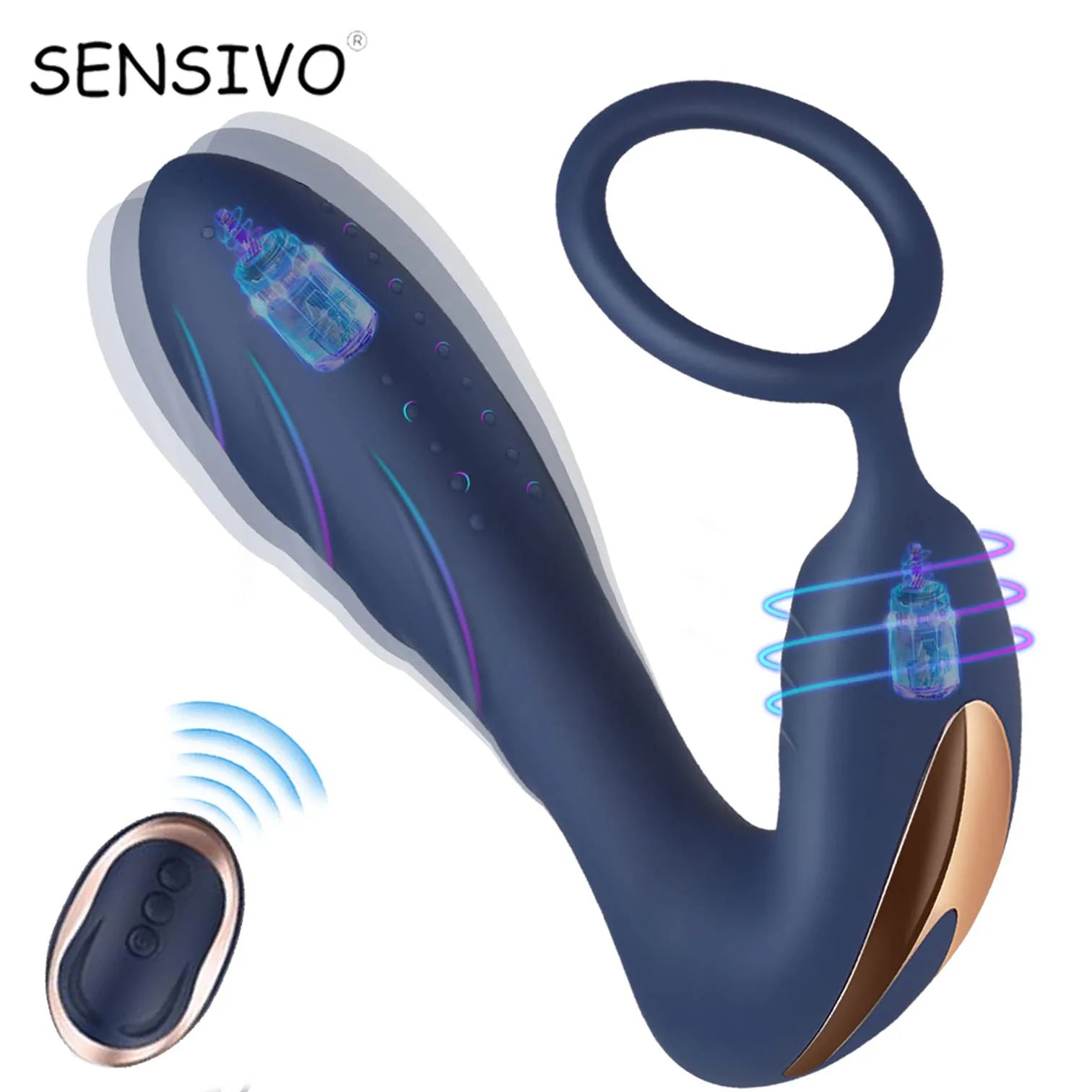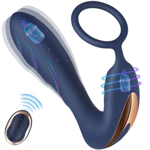 Masajeador de próstata vibrador anal - 10 patrones Plug anal con anillo para el pene, vibrador para punto G con control remoto, juguetes sexuales para adultos para hombres, mujeres y parejas