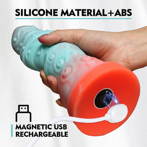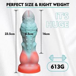 Inspirado en el misterio del cosmos y la mitología antigua, este dildo combina un diseño poderoso con placer sensorial. Su degradado de color pasa de un azul verdoso profundo a un cálido naranja coral, reflejando las profundidades del océano y la inmensidad del espacio. La cabeza cónica asegura una inserción suave, mientras que la textura y las crestas únicas aumentan la fricción para una experiencia más estimulante. Mide 23.5 cm de longitud total con 16 cm de longitud útil y un diámetro máximo de 6.5 cm, siendo perfecto para usuarios experimentados. La base de succión ofrece uso manos libres en cualquier superficie plana.