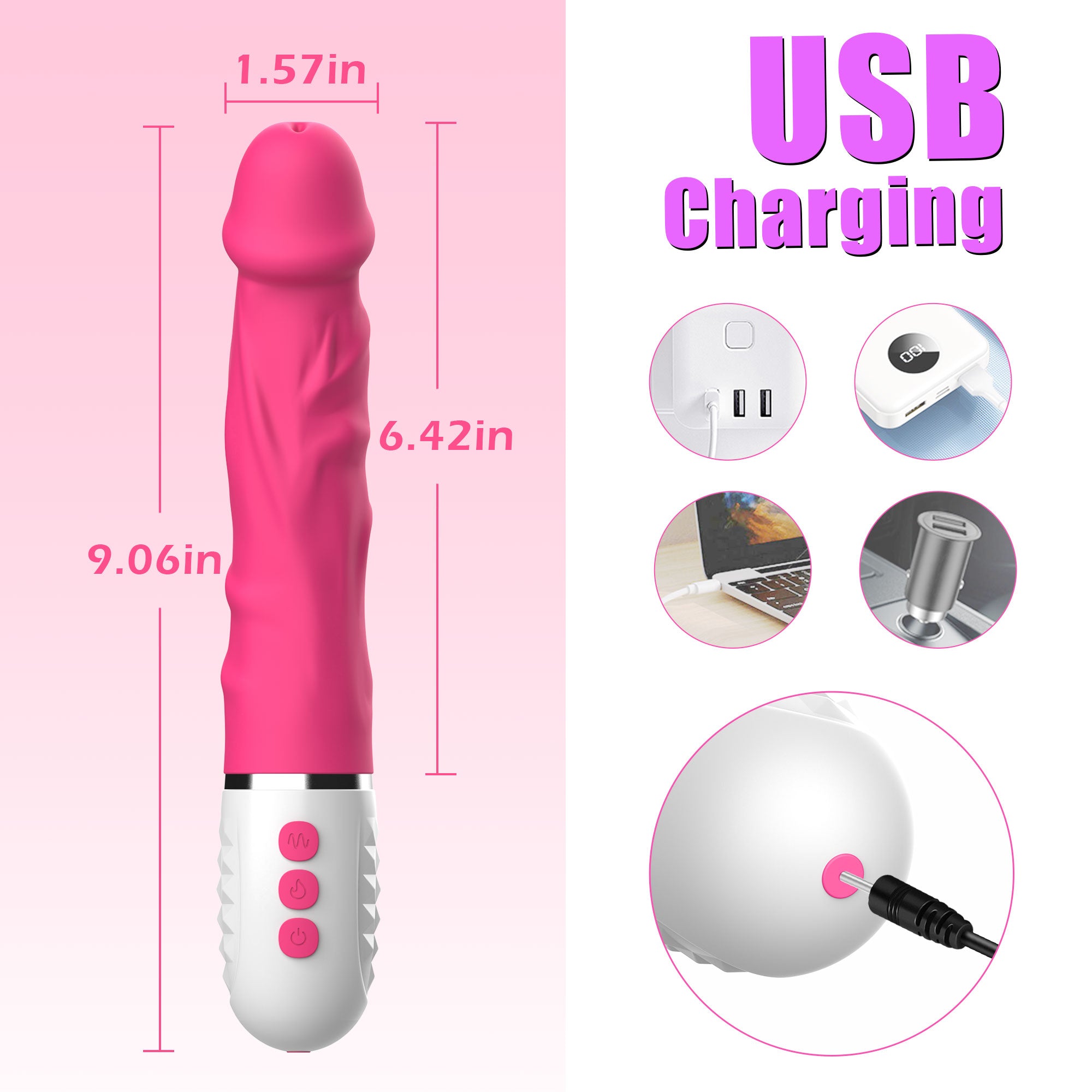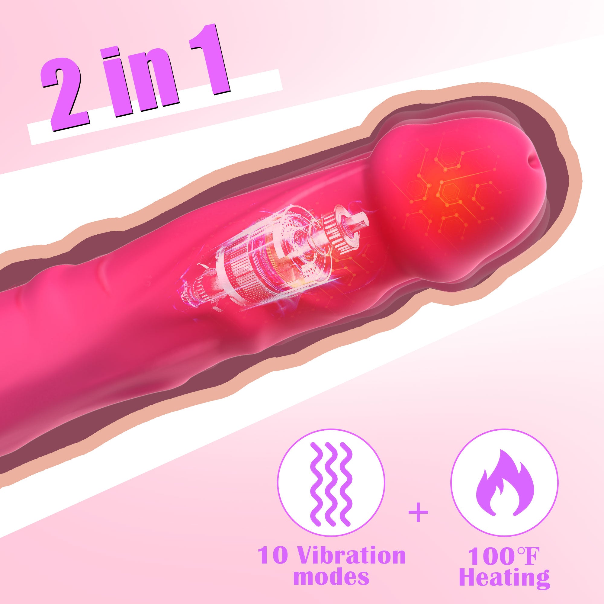 2 Funciones del consolador electro de empuje:Calentamiento Inteligente con Protección contra Sobrecalentamiento: ¡Se Calienta al Tacto en Solo un Minuto! Se Calienta hasta un Máximo de 100¨H y se Mantiene Constante.