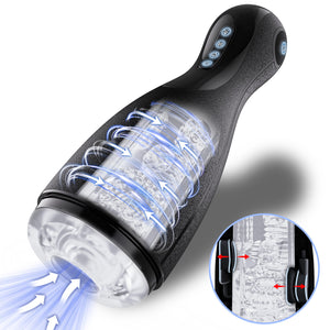 3 Modos de embestida 3 potentes modos de embestida, impulsa tu libido al límite. Este masturbador es un juguete sexual masculino único con vibración y embestida que maximiza tus sentidos hasta que el cosquilleo y los temblores se extienden por todo tu cuerpo. La aceleración y las vibraciones del juguete sexual son tan intensas que solo puedes tensar tus músculos y sentir la relajación profunda.
