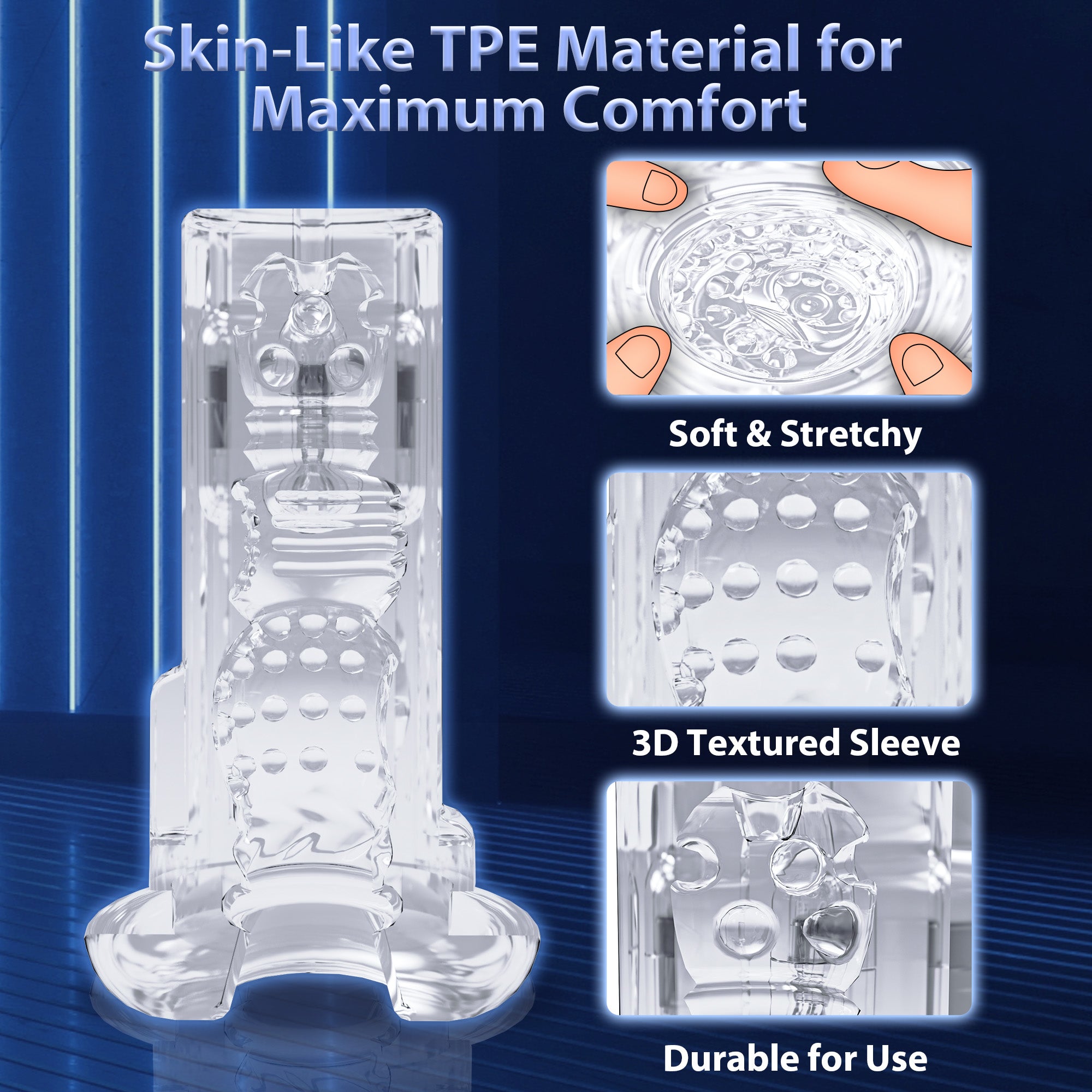 Abertura vaginal realista, textura 3D suave El masturbador tiene una abertura amplia y atractiva, la entrada imita la vagina, solo esperándote. Dentro de la carcasa hay protuberancias para una emoción excitante. La funda acanalada está hecha de un material TPE seguro y elástico que se estira para adaptarse a la mayoría de los hombres. Usa un poco de lubricante a base de agua y simplemente deslízate en él y sorpréndela con ello.