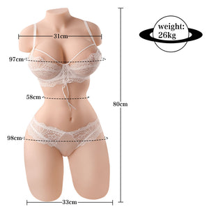 Fabricada con materiales TPE de alta calidad, la muñeca garantiza máxima comodidad y puede vestirse para un nivel elevado de satisfacción. Vestir a la muñeca mejora la experiencia sensual en general.