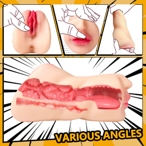 Estimulador masculino realista con labios realistas – Placer multifunción 3 en 1