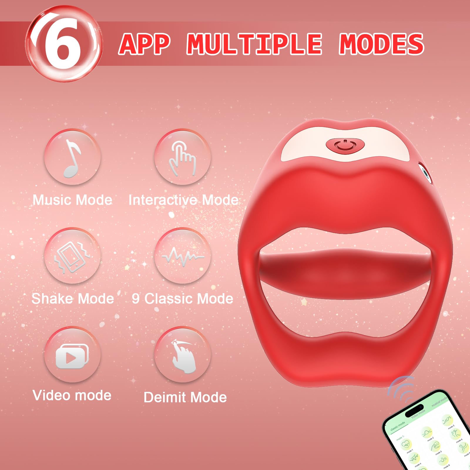Control remoto mejorado por APP A través de la APP puedes realizar el control a distancia de este vibrador para parejas. La APP ofrece 6 modos, también puedes disfrutar de videollamadas, música y muchas otras diversiones.