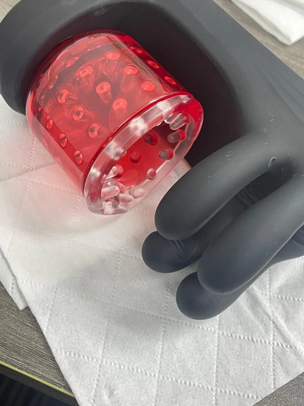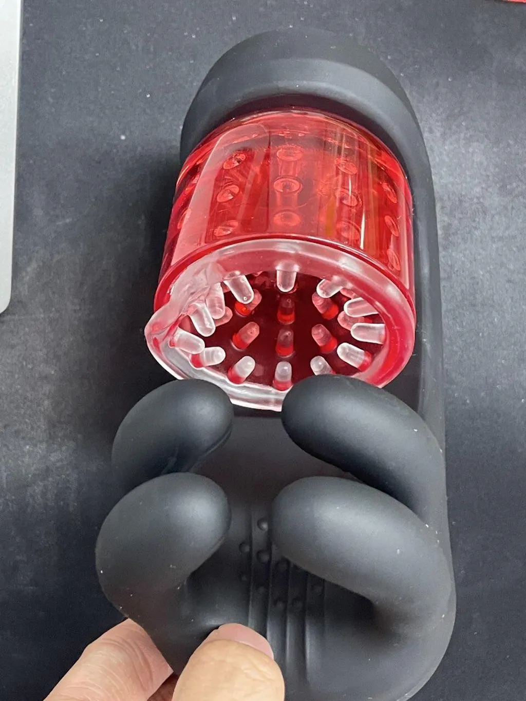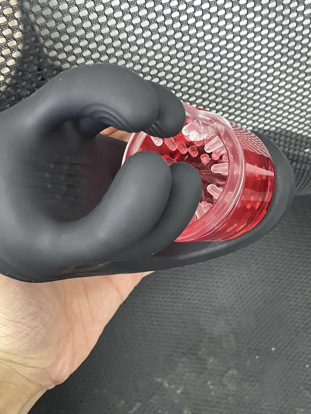 The four-finger grip system provides 9 adjustable grip levels for personalized pressure control. Each finger pad features textured patterns for added friction, while the internal sleeve includes ridges and beads to create a tighter, more enveloping sensation. The LED display allows you to easily monitor modes and adjust settings.