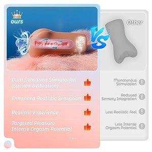 - 【3 succiones dinámicas y 10 vibraciones】 Este juguete sexual para adultos pocket pussies de última generación presenta 3 potentes mecanismos de succión que envuelven suavemente las áreas sensibles, replicando las sensaciones del placer oral. La función de 10 vibraciones intensifica aún más la experiencia, enviando ondas emocionantes de estimulación a lo largo del juguete. La adición de una ventilación de aire permite un control preciso de la fuerza de succión, permitiéndote adaptar la experiencia al nivel de intensidad deseado.